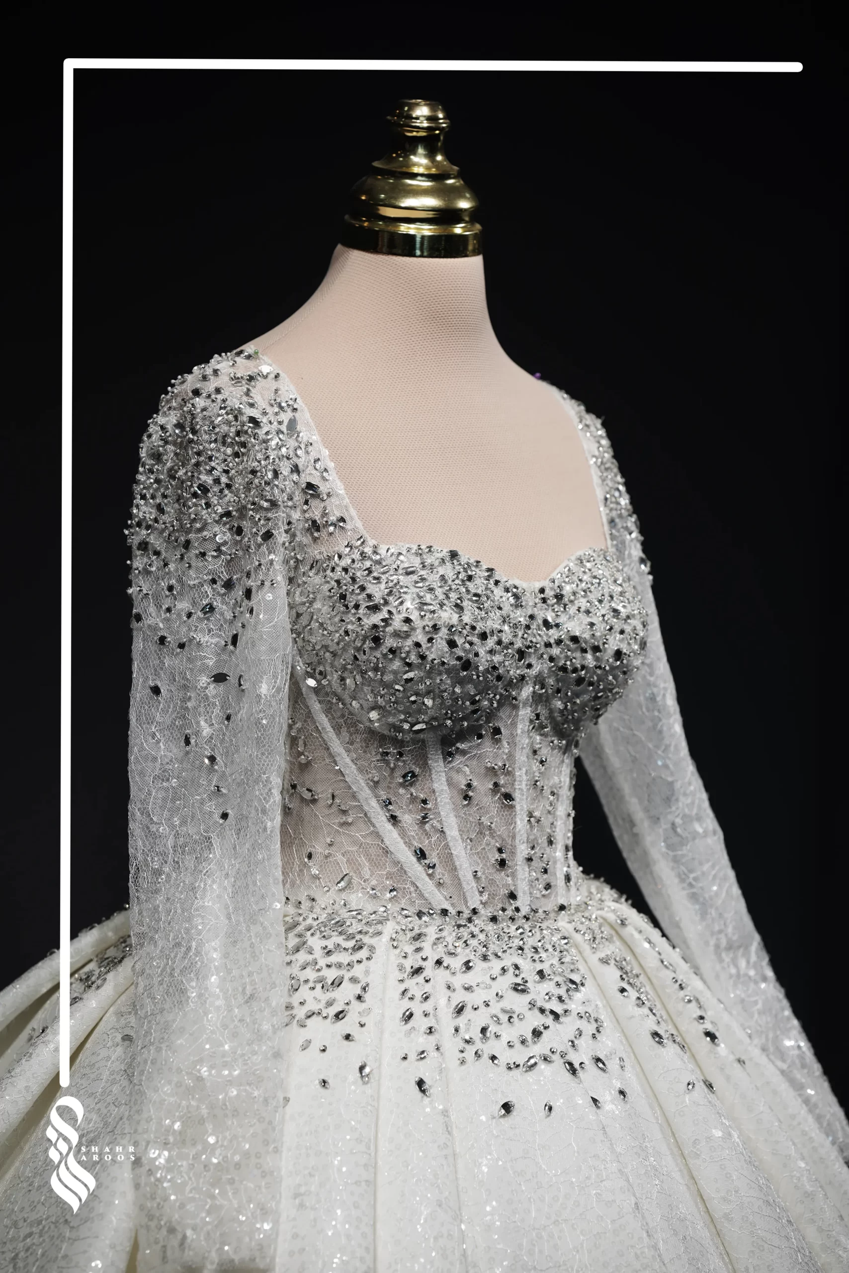 یکی از پرفروشترین لباسها و پرتقاضاترین لباسهای شهر عروس دقیقا همین لباس عروس مدل الماس است چرا که از همه لحاظ ویژه و خاص هست. مدلی که زیبایی وصف ناپذیری به هر عروسی رو میده و از طرفی بخاطر داشتن نگین ها و سنگ های مارکیز اصلی زیبایی اون ، زیر نور بشدت درخشان هست و همه جوره به چشم میاد زیباییش.